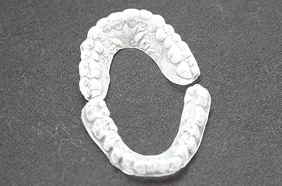 マウストレーの装着 - ホワイトニングジェルの入ったマウストレーを歯に装着します。